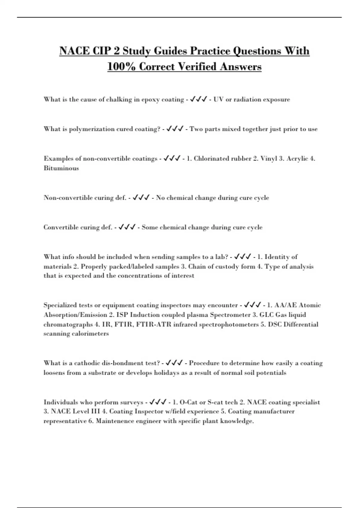 3. NACE Level III 4. Coating Inspector w/field experience 5. Coating manufacturer