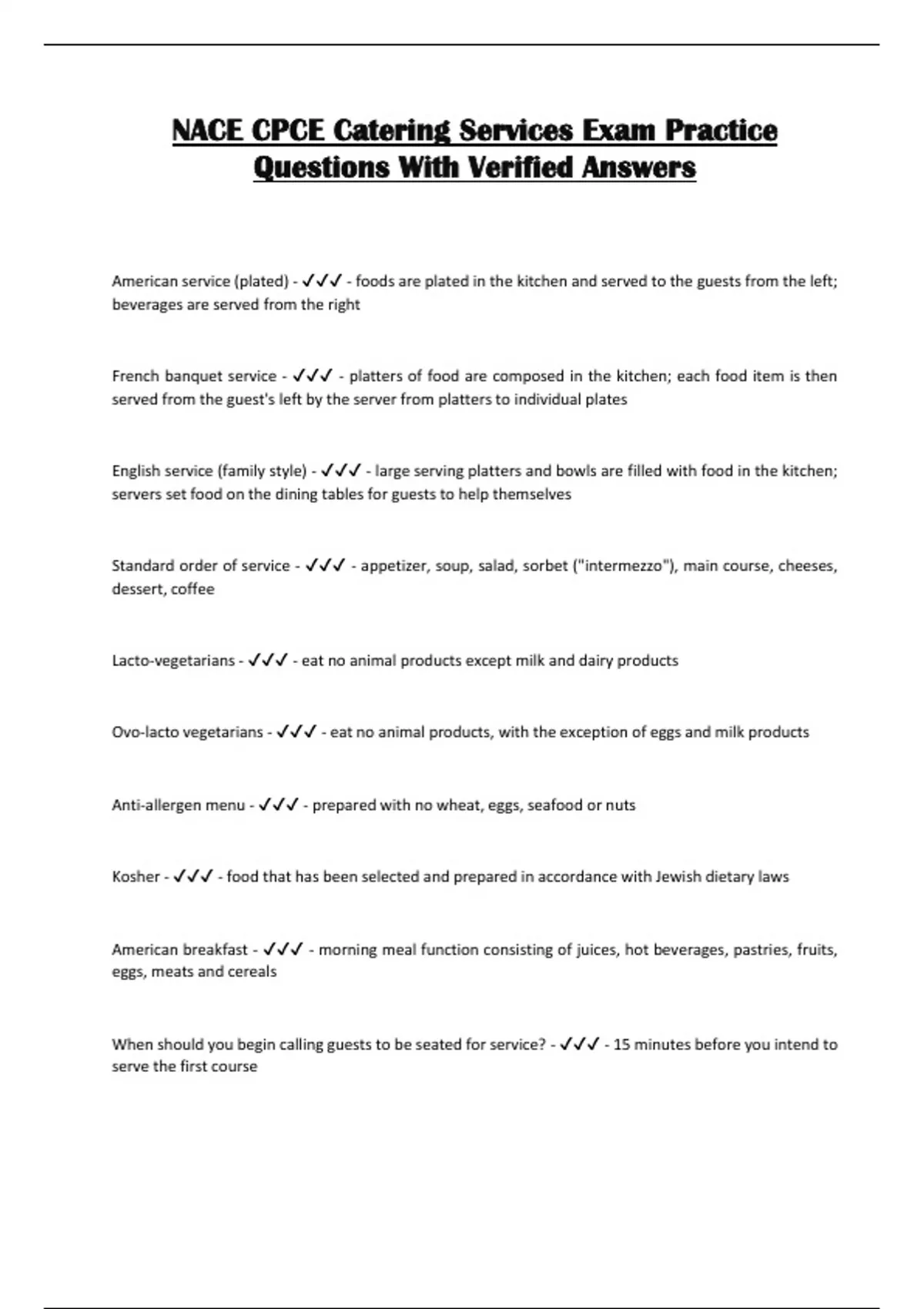 American service (plated) - ✔✔✔ - foods are plated in the kitchen and served to the guests from the left;