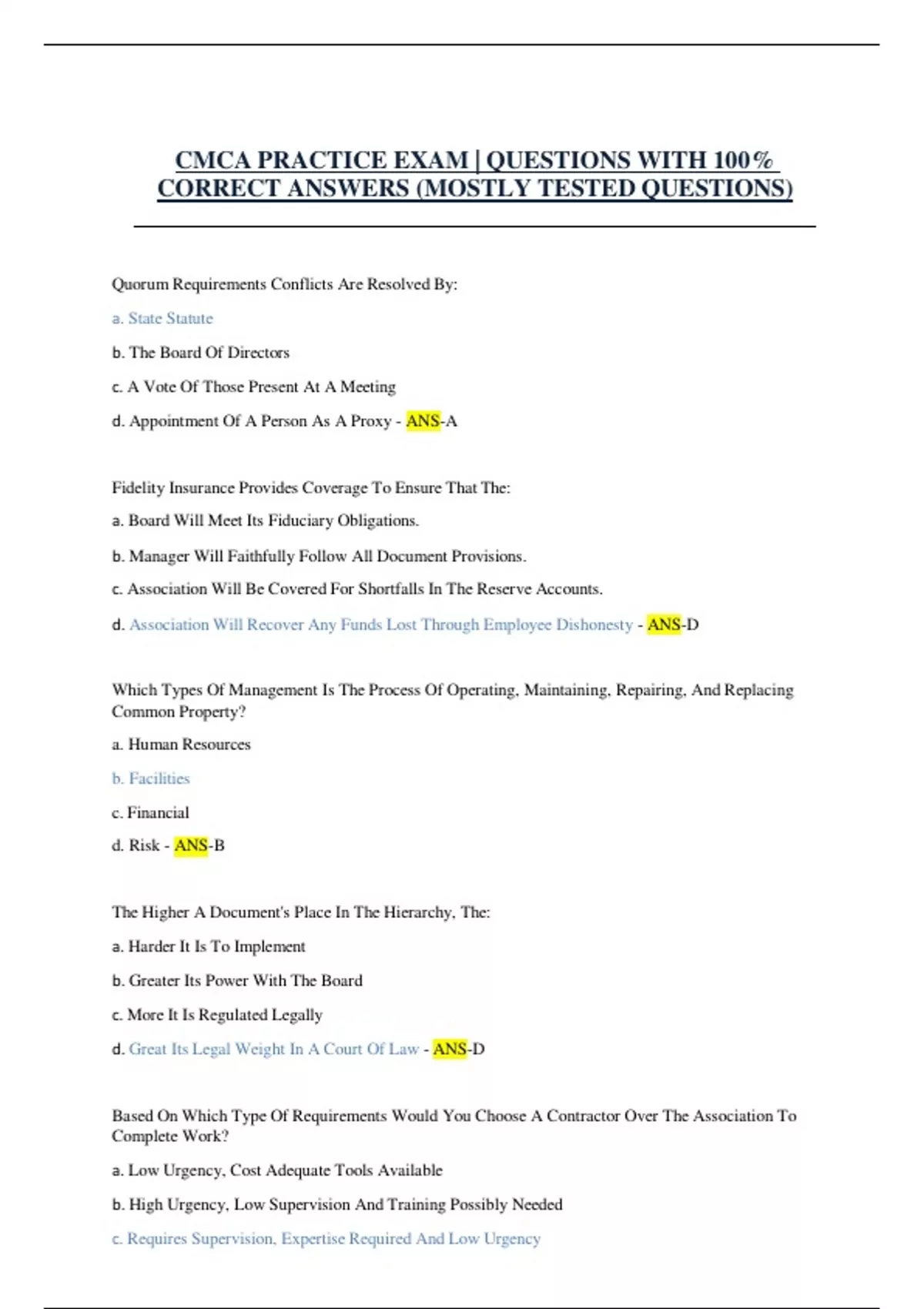 CORRECT ANSWERS (MOSTLY TESTED QUESTIONS)