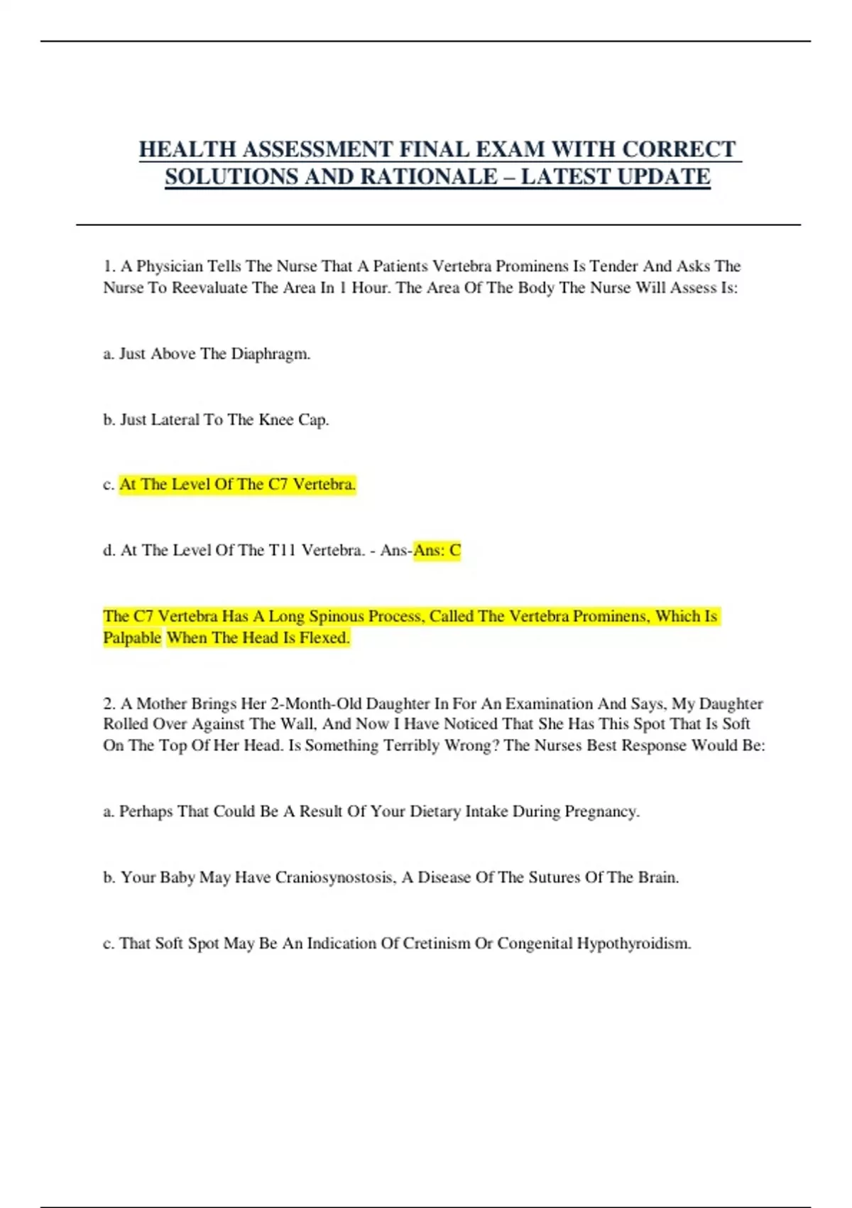 HEALTH ASSESSMENT FINAL EXAM WITH CORRECT