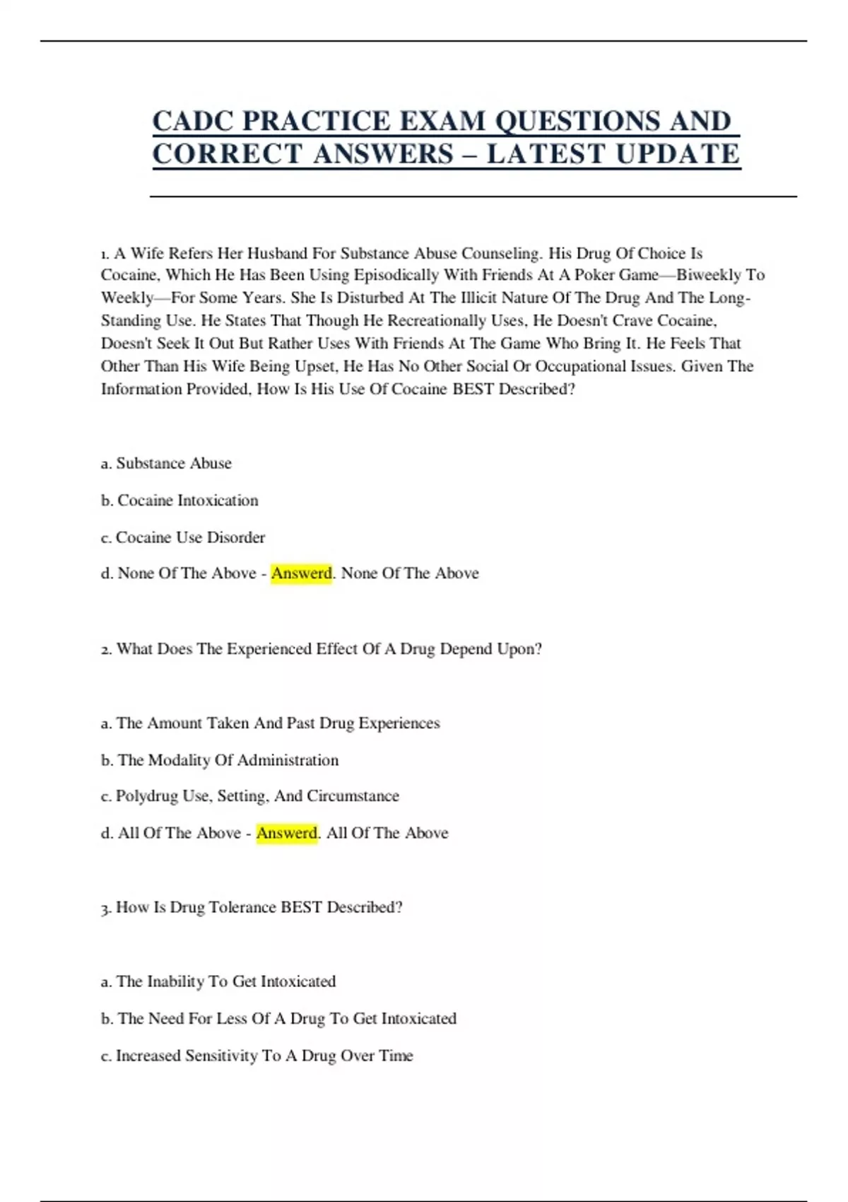 CADC PRACTICE EXAM QUESTIONS AND CORRECT ANSWERS – LATEST UPDATE