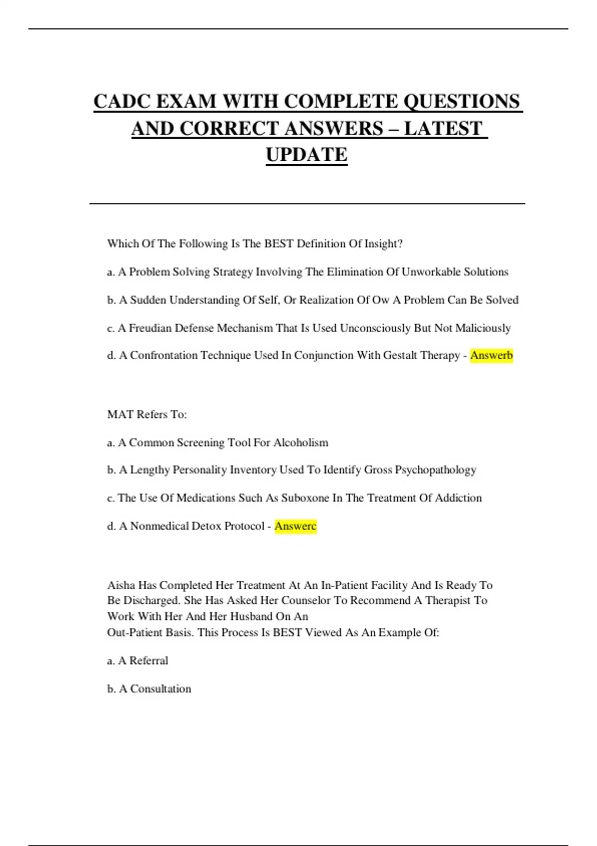 CADC EXAM WITH COMPLETE QUESTIONS