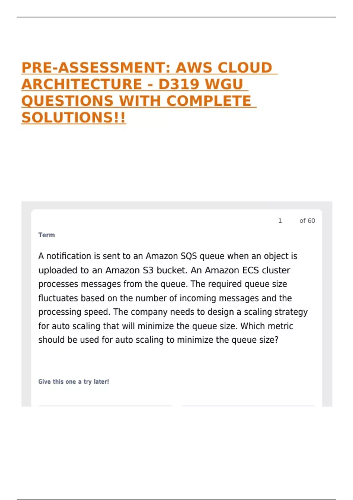 PRE-ASSESSMENT: AWS CLOUD ARCHITECTURE - D319 WGU QUESTIONS WITH COMPLETE SOLUTIONS!!