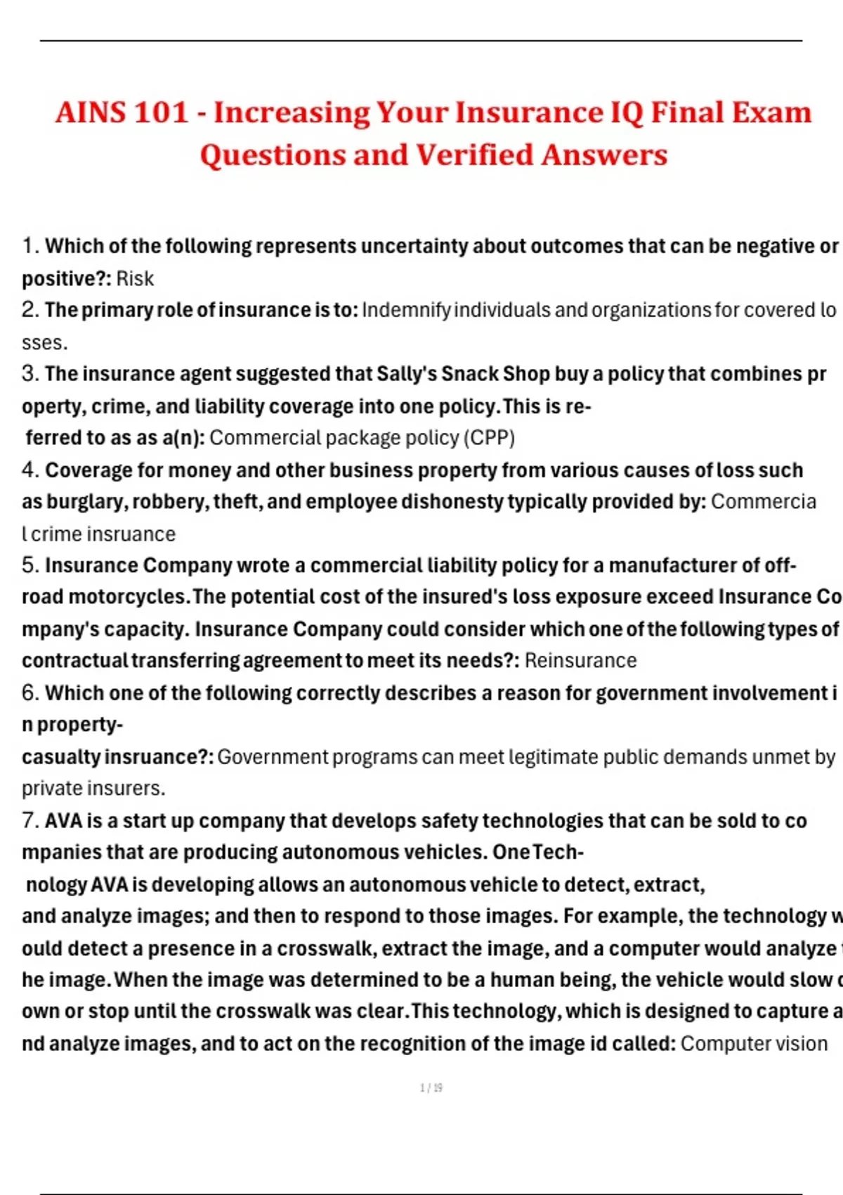 2. The primary role of insurance is to: Indemnify individuals and organizations for covered lo