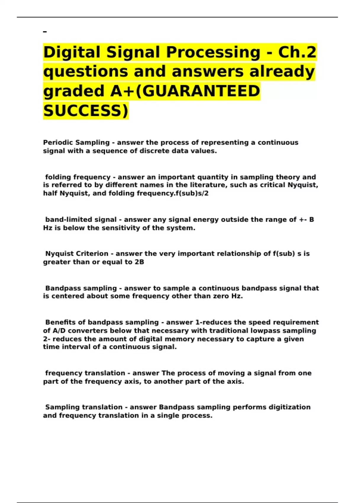 Benefits of bandpass sampling - answer 1-reduces the speed requirement