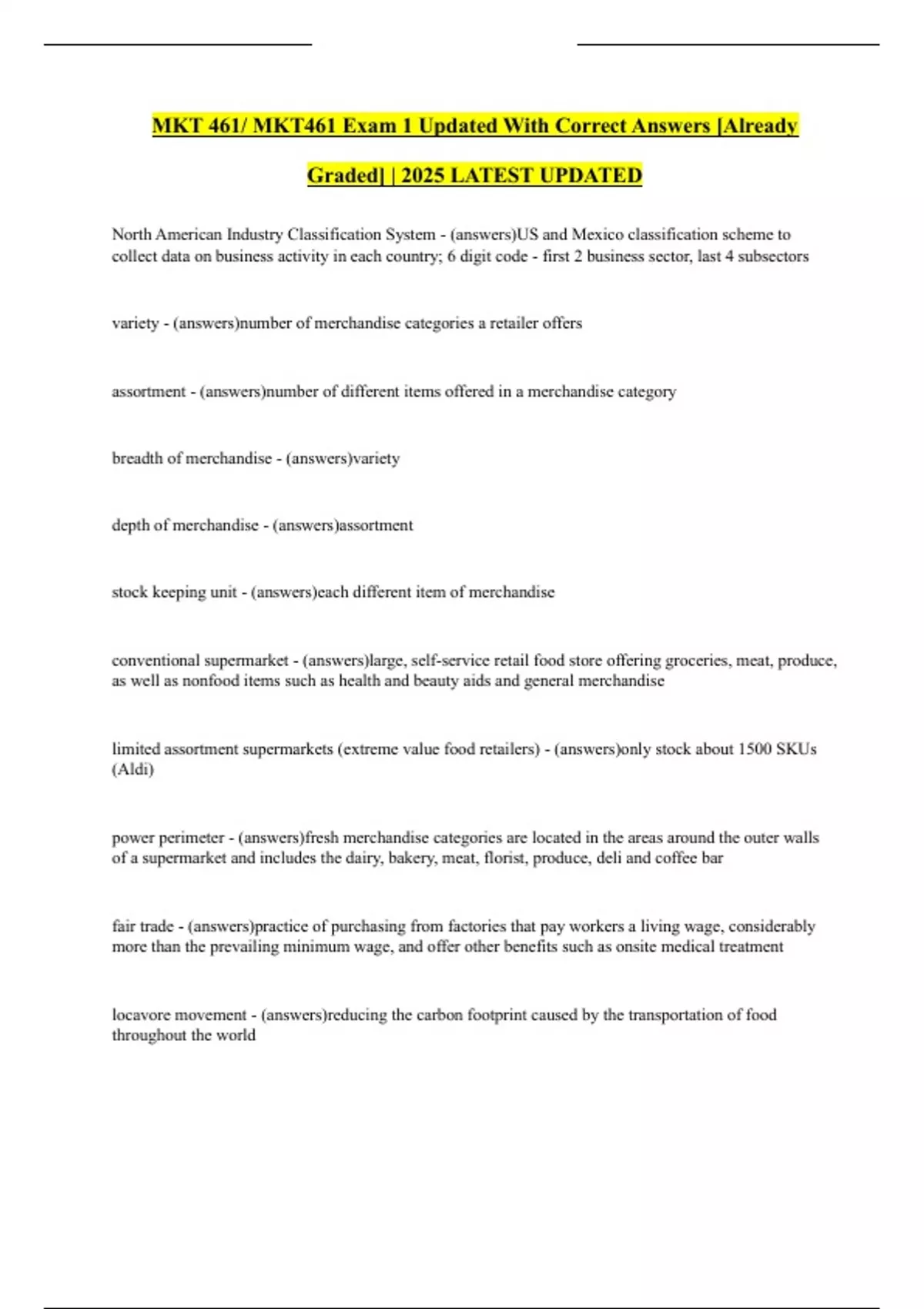 MKT 461/ MKT461 Exam 1 Updated With Correct Answers [Already