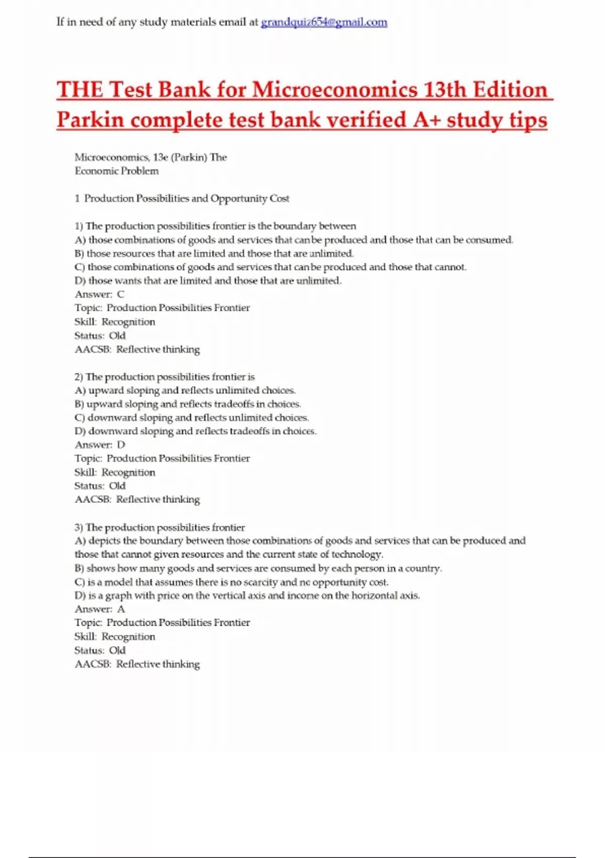 THE Test Bank for Microeconomics 13th Edition Parkin complete test bank verified A+ study tips