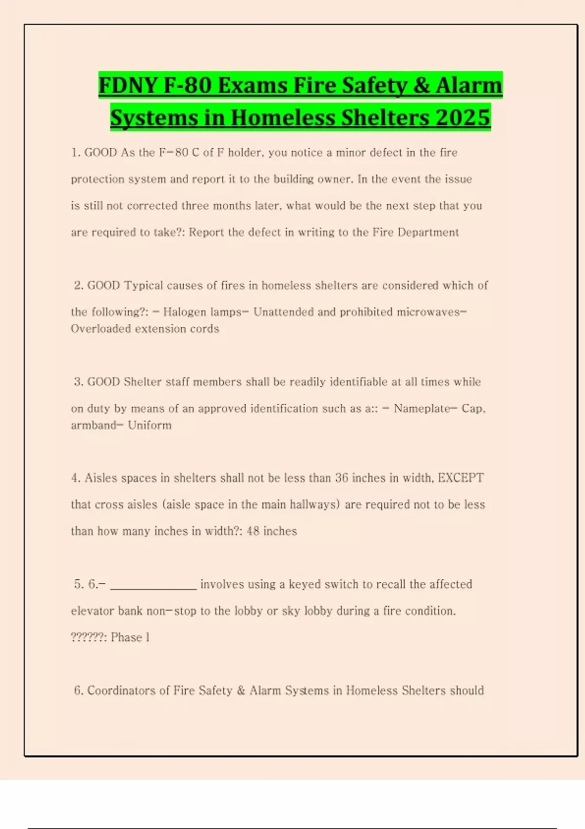 FDNY F-80 Exams Fire Safety & Alarm Systems in Homeless Shelters 2025