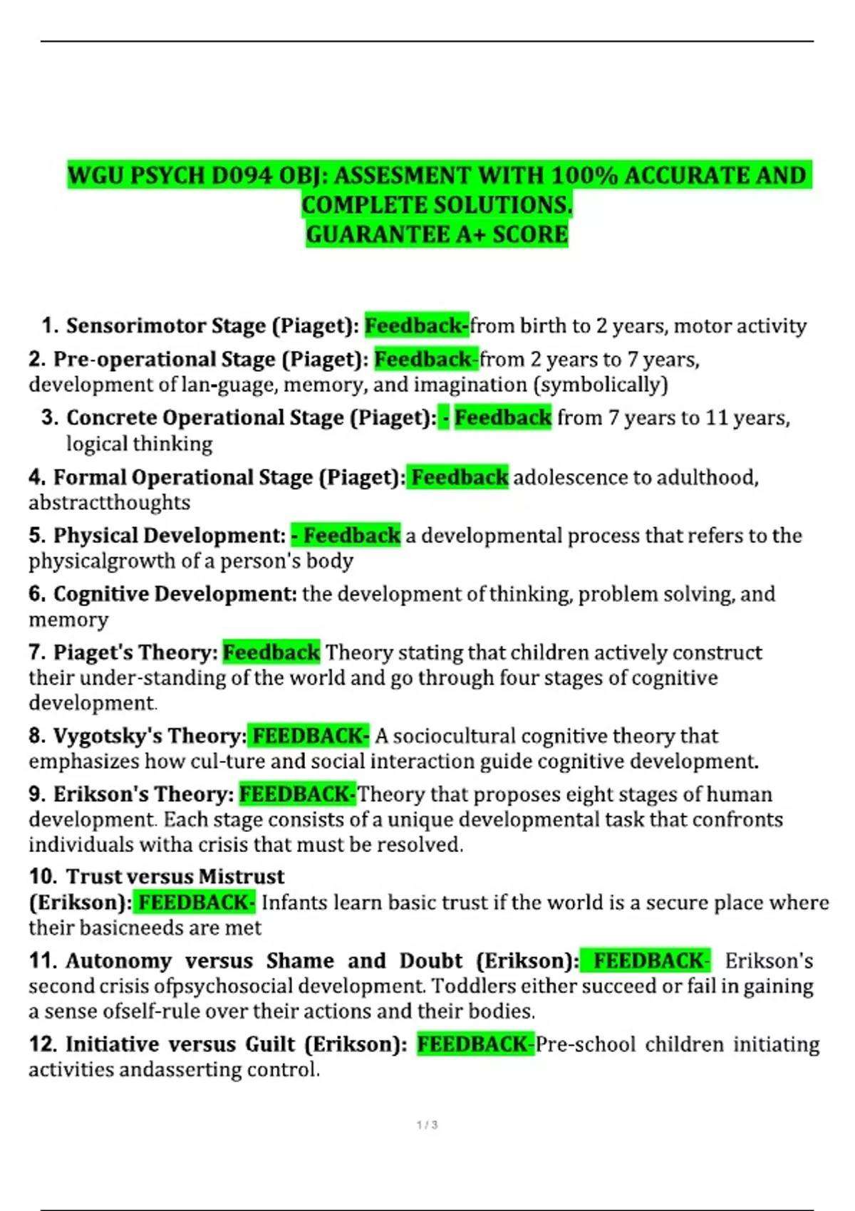 WGU PSYCH D094 OBJ: ASSESMENT WITH 100% ACCURATE AND COMPLETE SOLUTIONS. GUARANTEE A+ SCORE