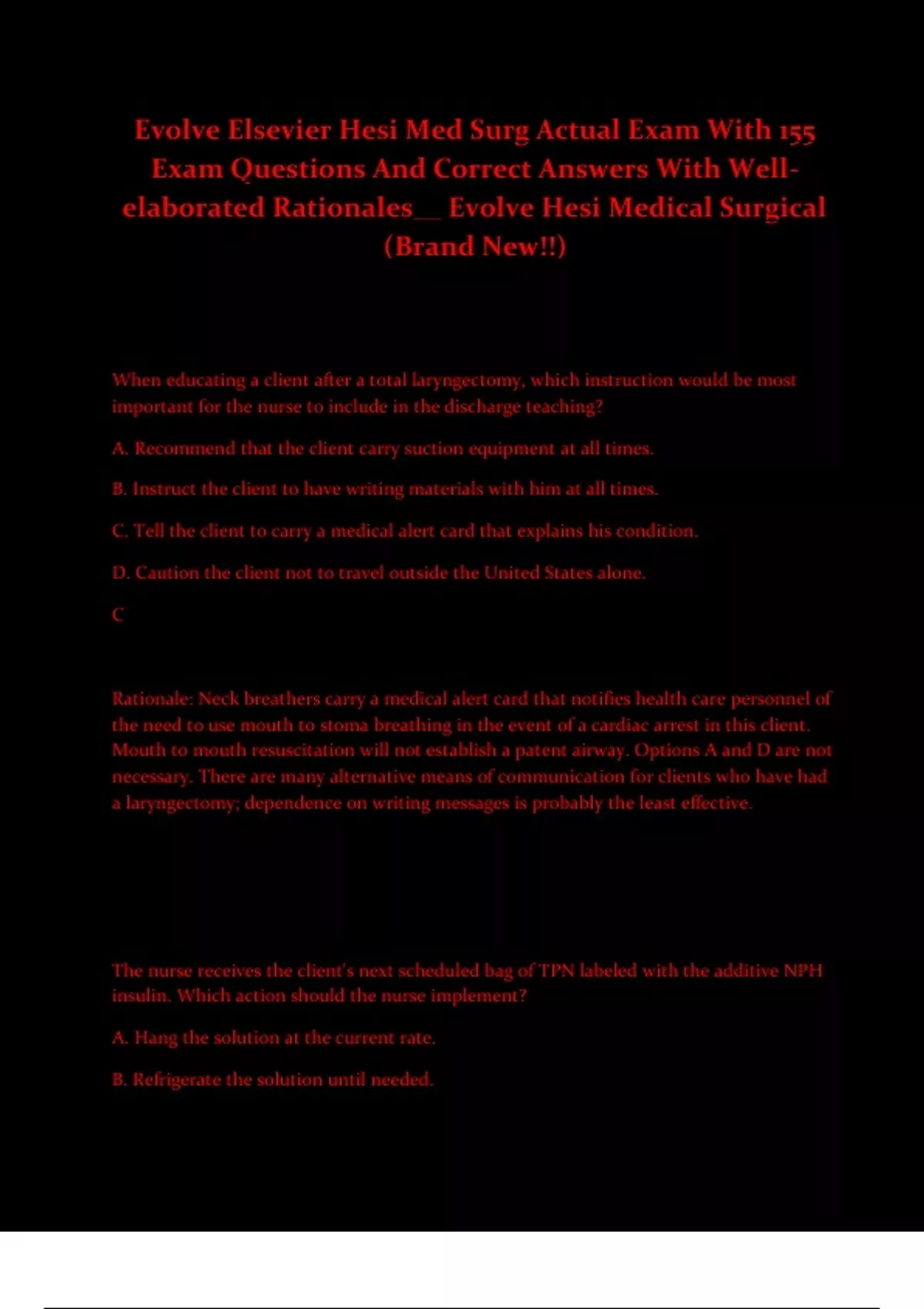 elaborated Rationales__ Evolve Hesi Medical Surgical