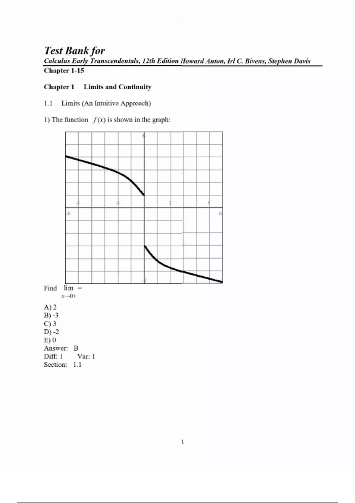 Test Bank for Calculus Early Transcendentals, 12th Edition Howard Anton, Irl C. Bivens, Stephen Davis
