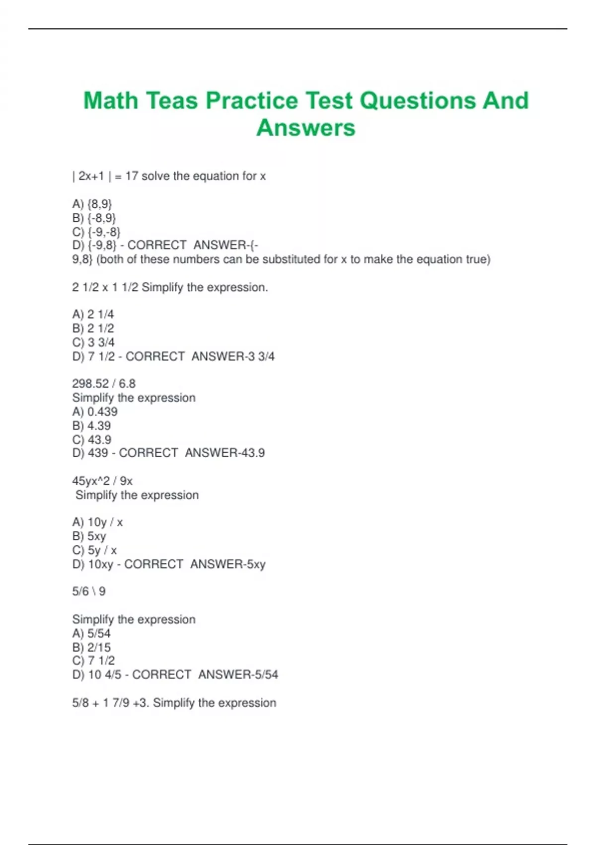 Math Teas Practice Test Questions And Answers Math Teas Practice Test Questions And Answers Math Teas Practice Test Questions And Answers
