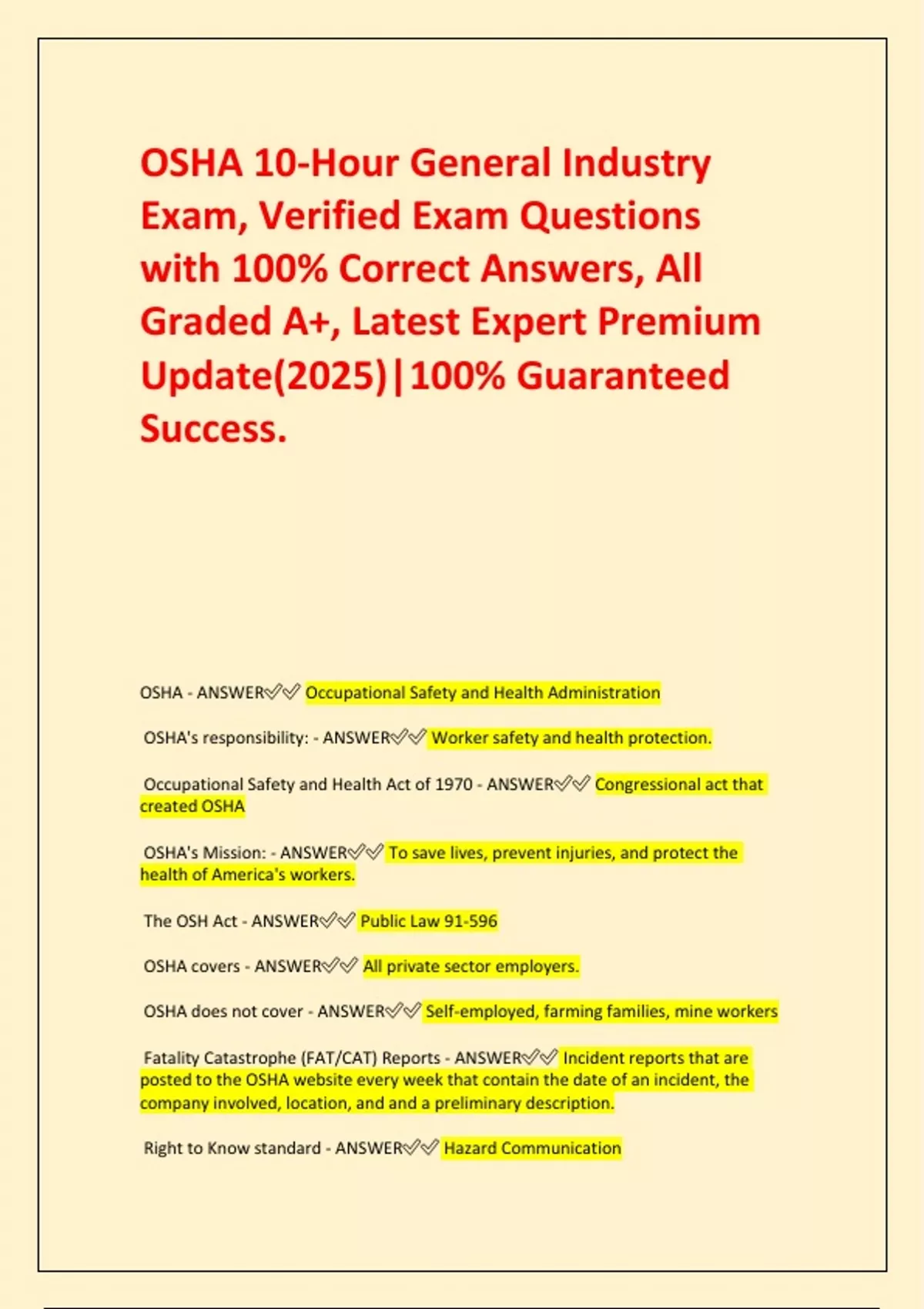 OSHA - ANSWER✅✅ Occupational Safety and Health Administration