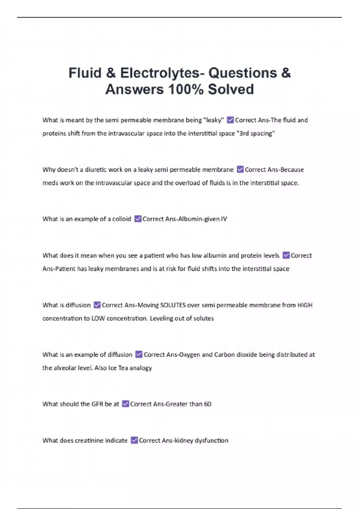 Fluid & Electrolytes- Questions & Answers|Latest Update