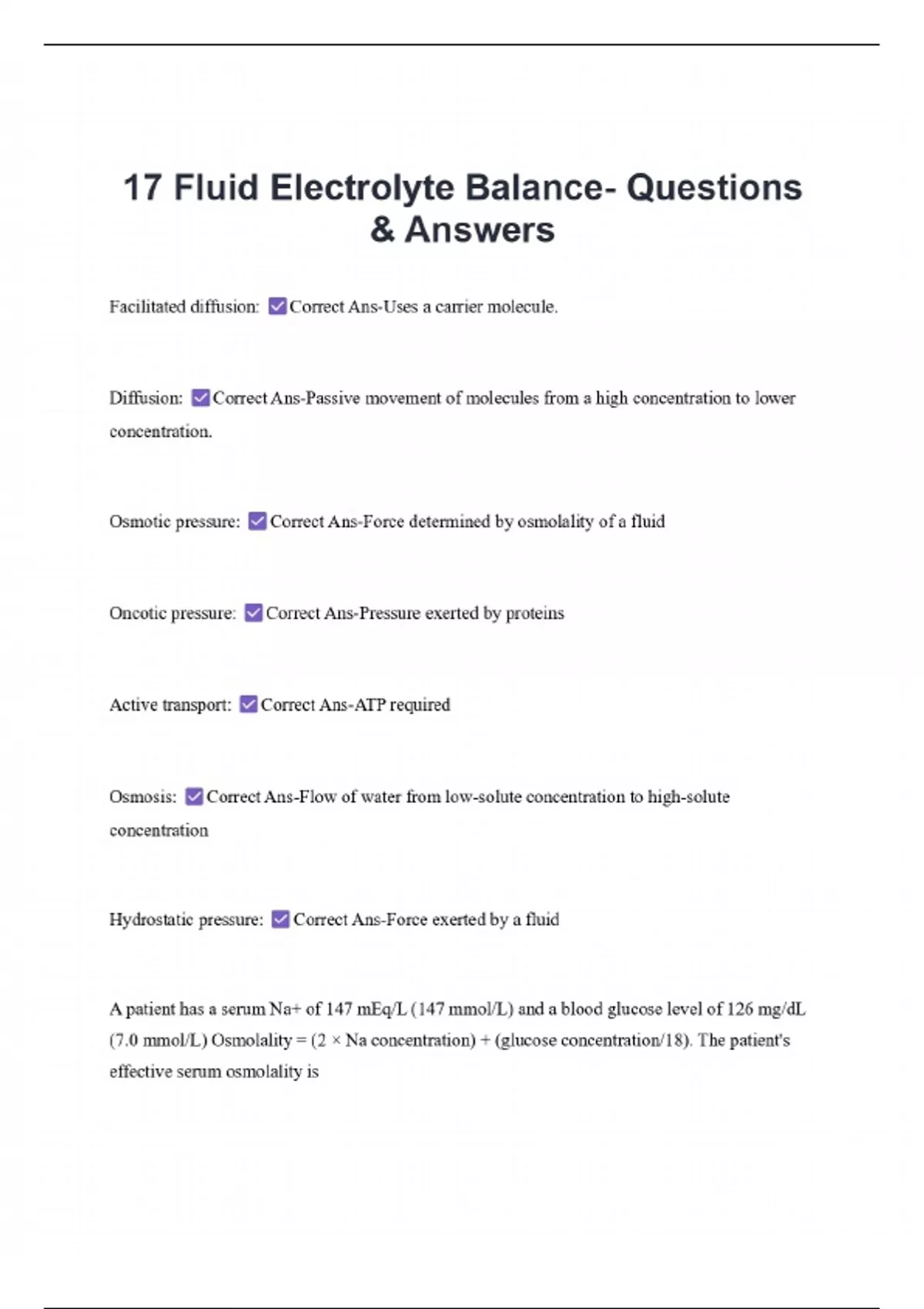 17 Fluid Electrolyte Balance- Questions& Answers 100% Correct