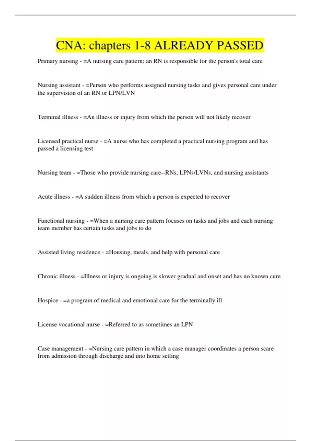 CNA: chapters 1-8 ALREADY PASSED