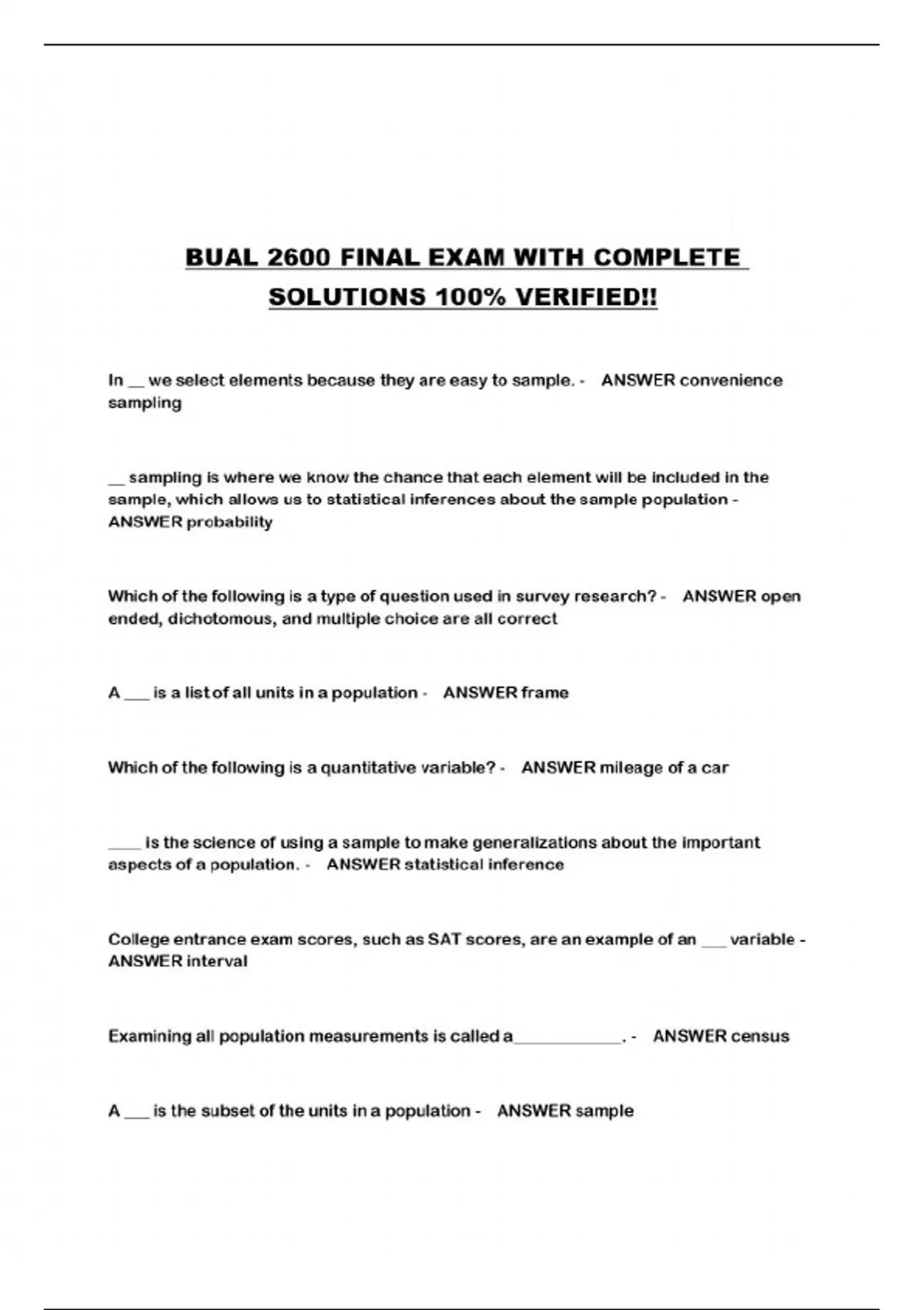 bual 2600 final exam with complete solutions
