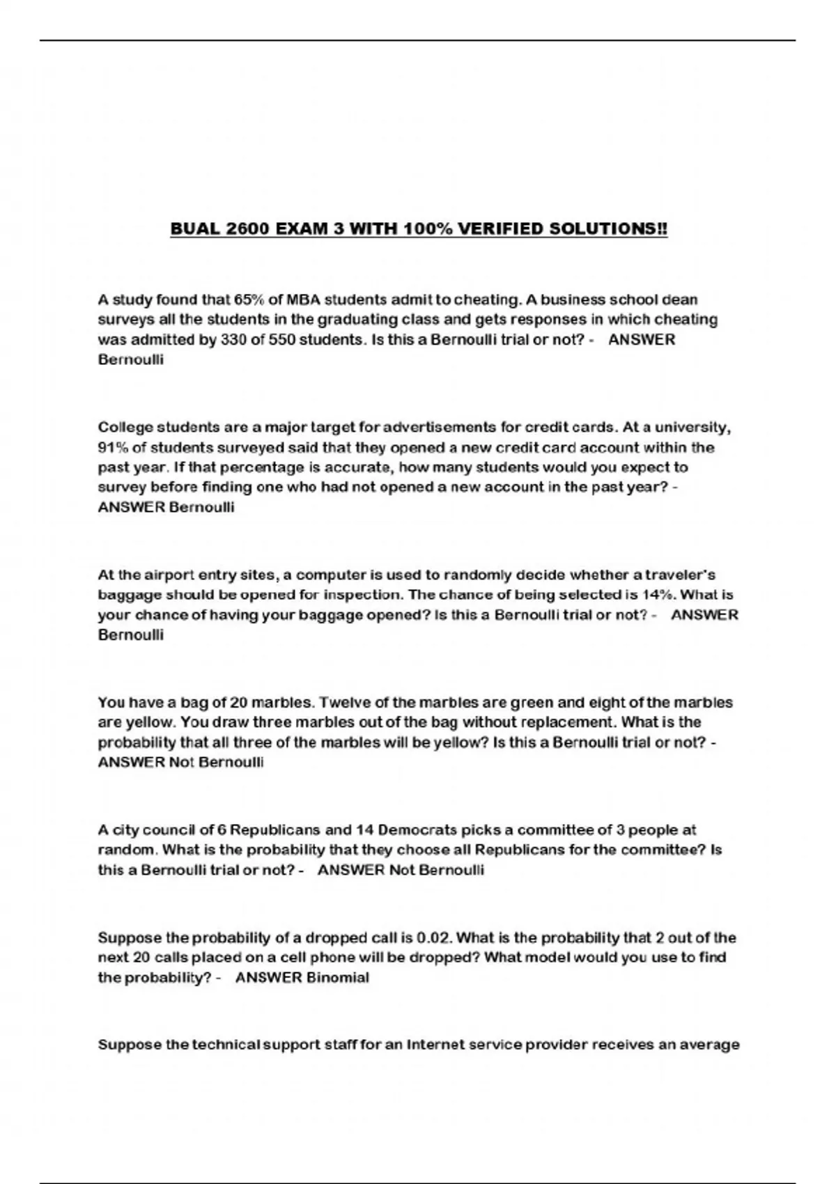 BUAL 2600 PACKAGED EXAMS!!