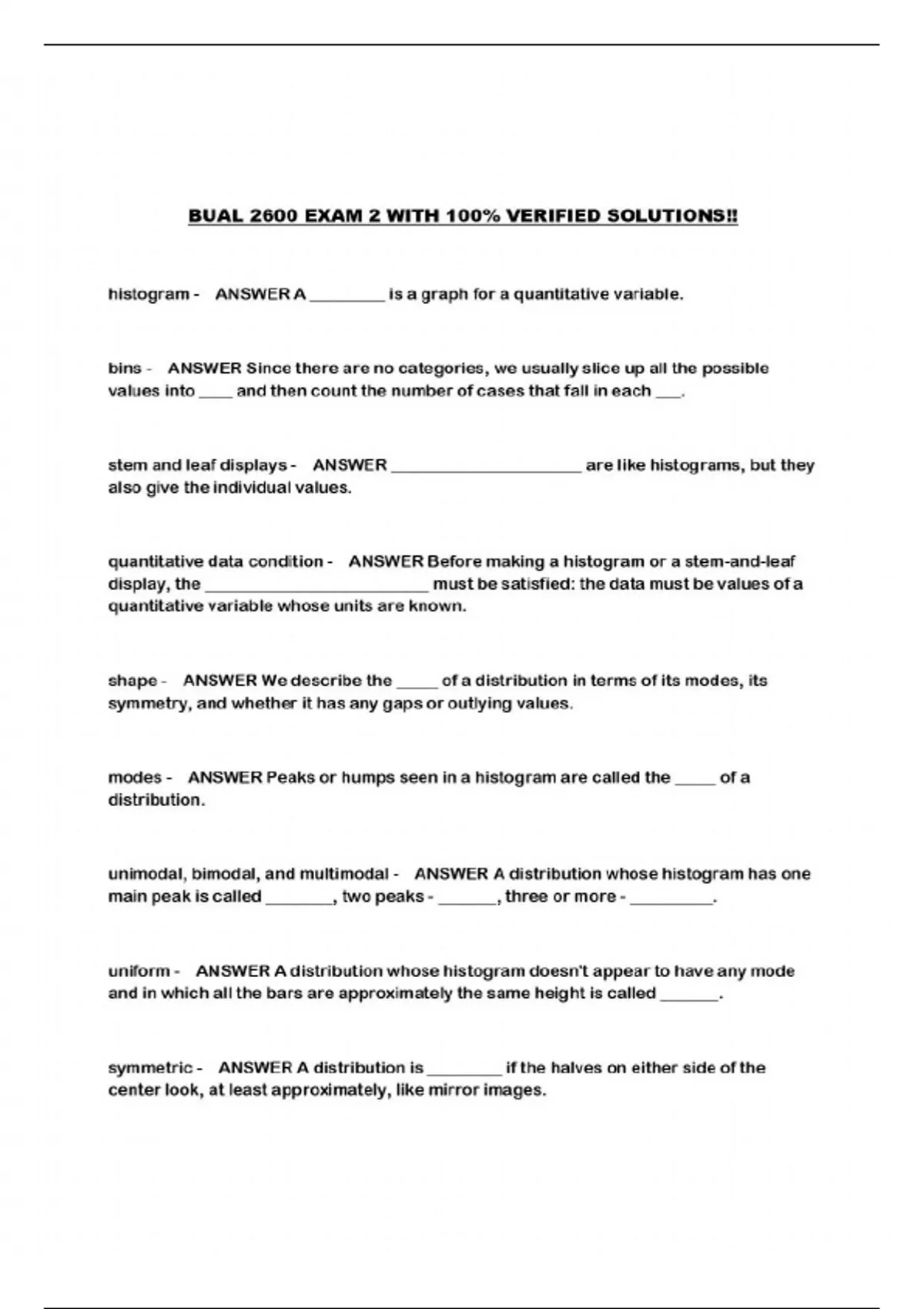 BUAL 2600 PACKAGED EXAMS!!