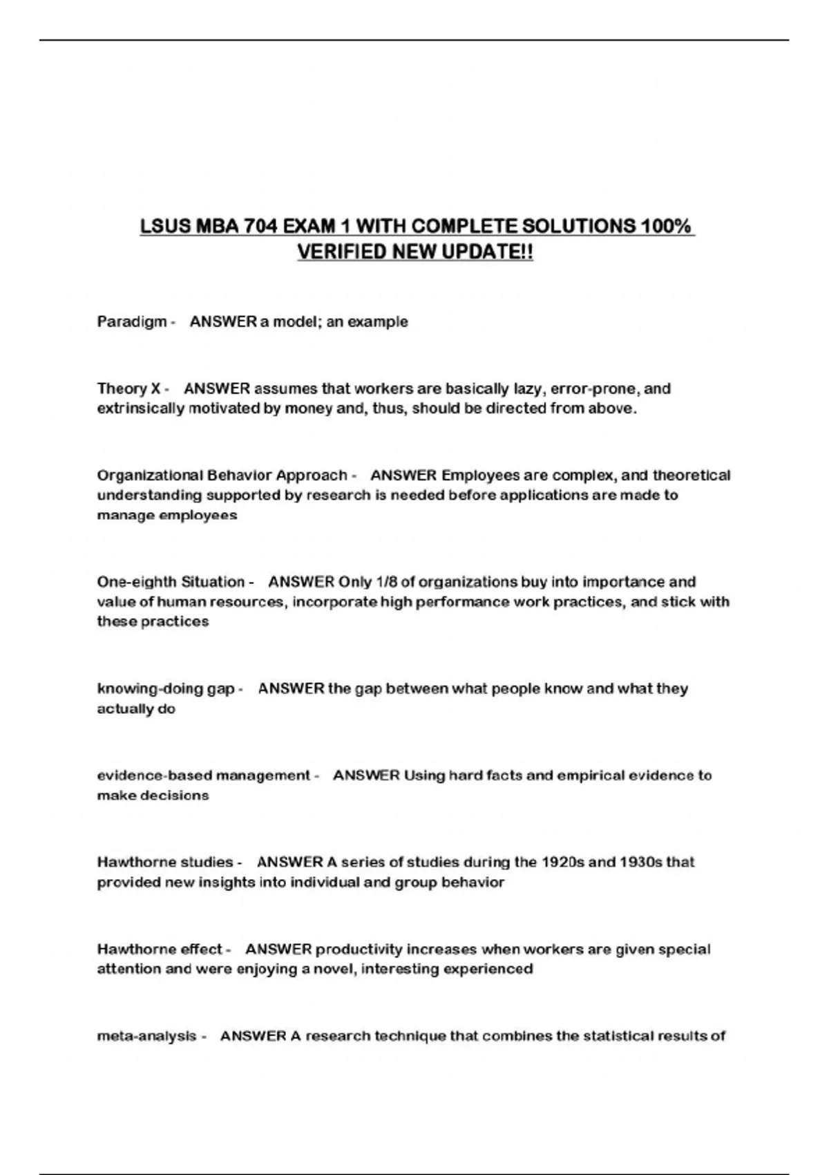 LSUS MBA 704 EXAM 1 WITH COMPLETE SOLUTIONS 100% VERIFIED NEW UPDATE!!...