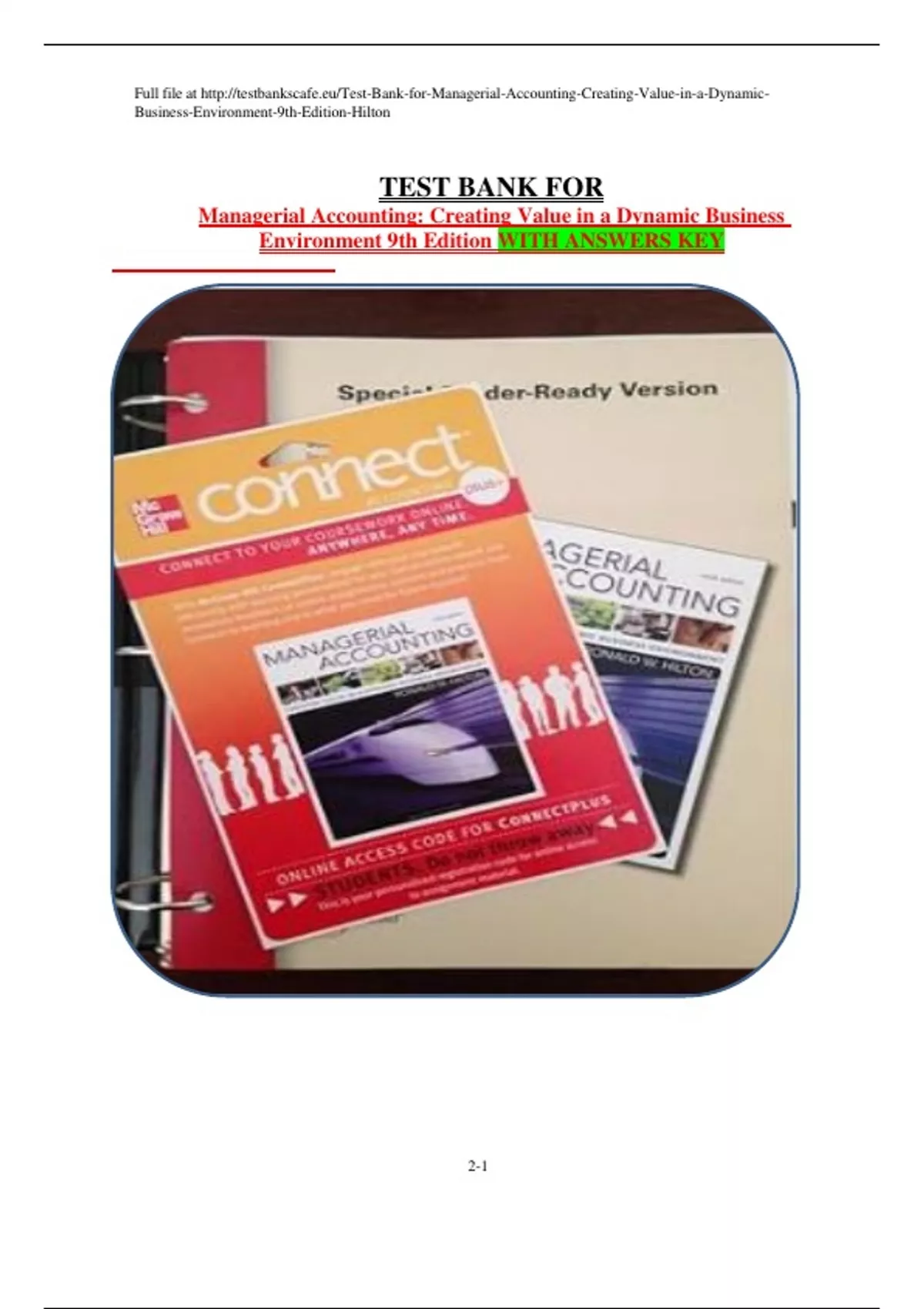, Full file at http://testbankscafe.eu/Test-Bank-for-Managerial-Accounting-Creating-Value-in-a-Dynamic-