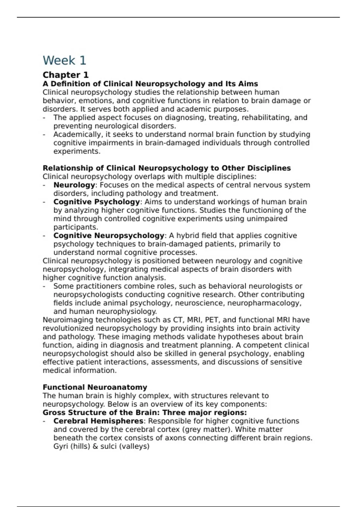 A Definition of Clinical Neuropsychology and Its Aims