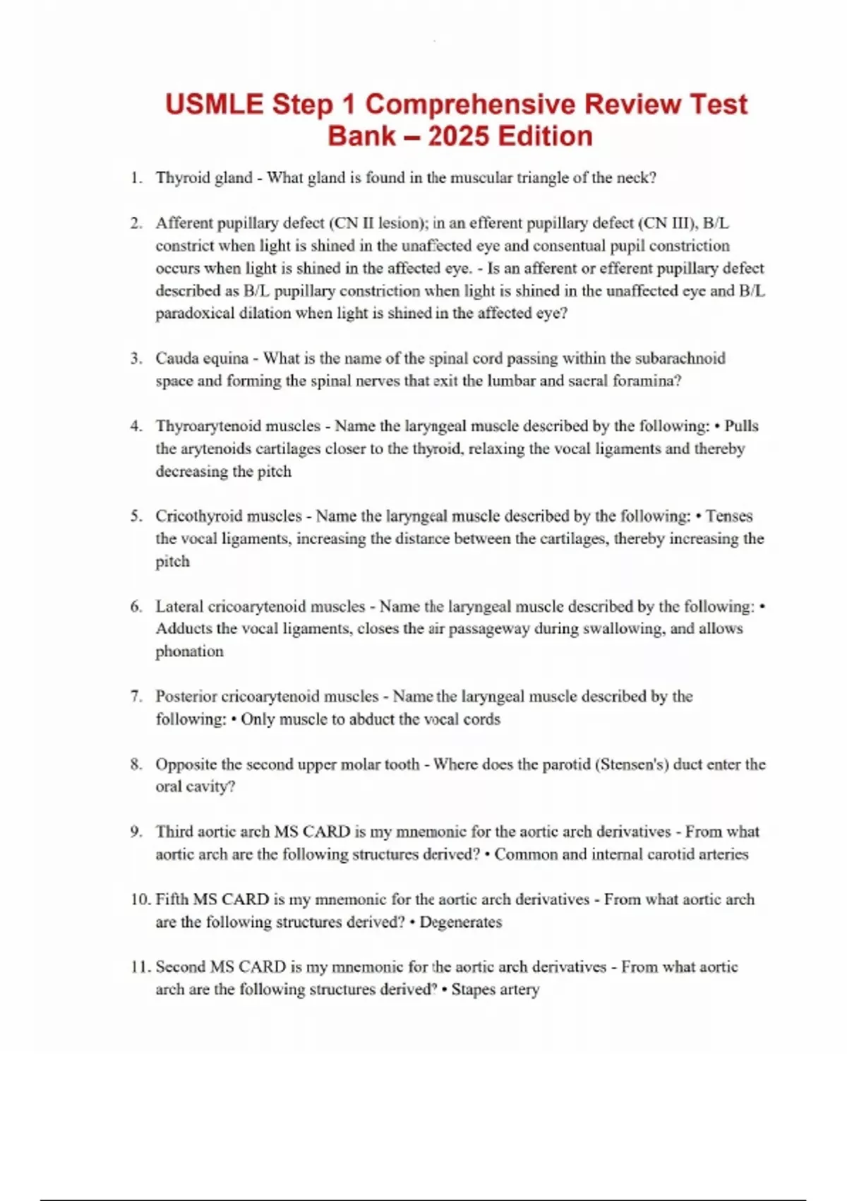 USMLE Step 1 Comprehensive Review Test Bank – 2025 Edition