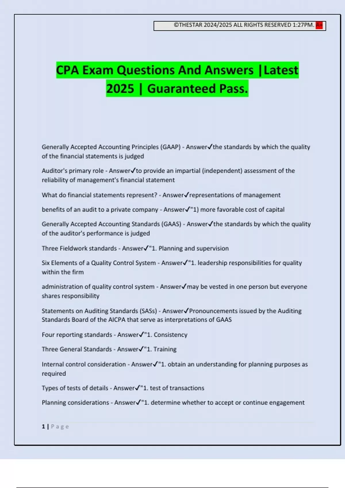 CPA Exam Questions And Answers |Latest