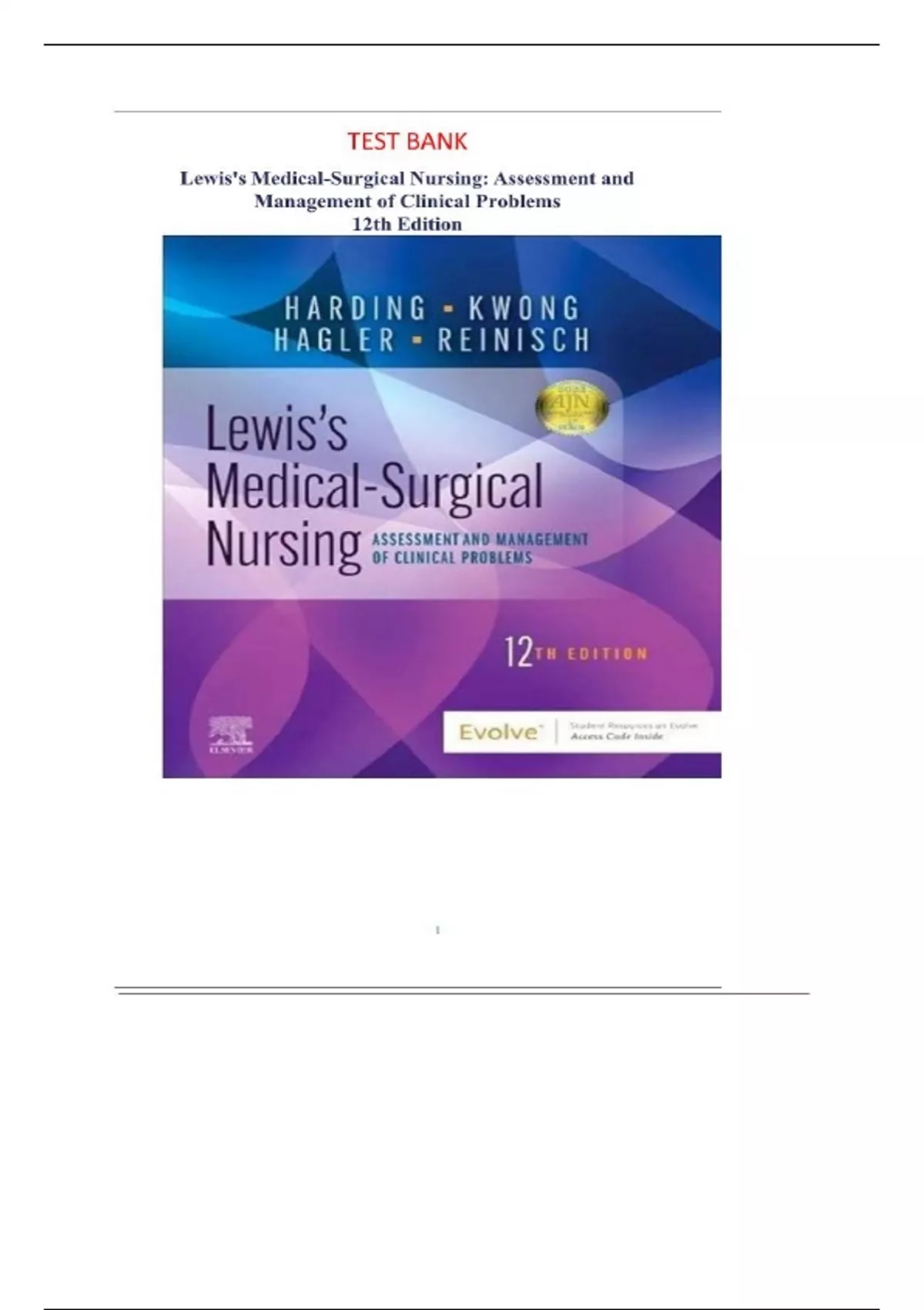 Test Bank Lewis Medical-Surgical Nursing: Assessment and Management of Clinical Problems 12th Edition By Mariann M. Harding, Jeffrey Kwong, Dottie Roberts, Debra Hagler, Courtney Reinisch | LATEST