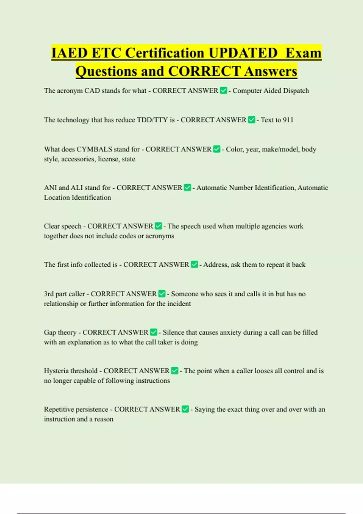 Questions and CORRECT Answers