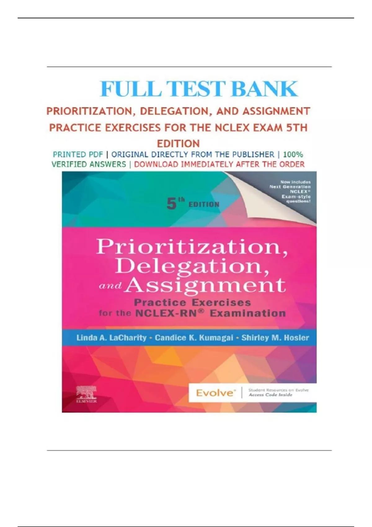 Test Bank For Prioritization, Delegation, and Assignment, 5th Edition, Practice Exercises for the NCLEX Examination Updated, All Chapters 1-22 |Linda A. LaCharity, Candice K. Kumagai, Shirley Hosler | 9780323683166 | LATEST