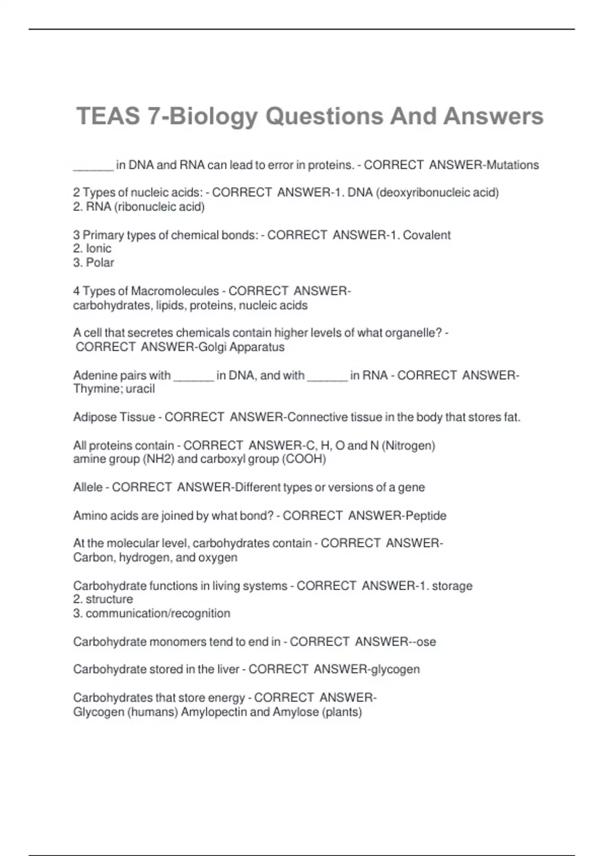 TEAS 7-Biology Questions And Answers TEAS 7-Biology Questions And Answers TEAS 7-Biology Questions And Answers