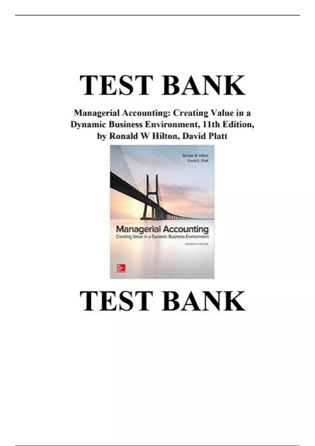Test Bank for Managerial Accounting: Creating Value in a Dynamic Business Environment, 11th Edition, by Ronald W Hilton, David Platt, ISBN-10: X, ISBN-13: 9782