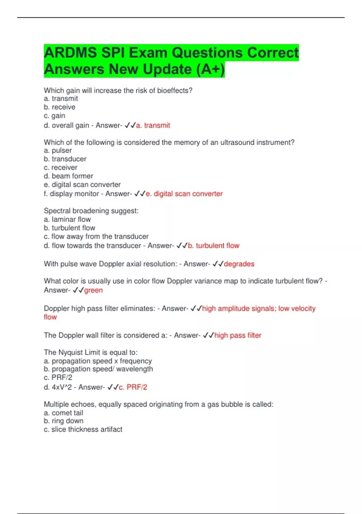 Pulse repetition frequency - Answer- ✔✔Number of pulses that an ultrasound system