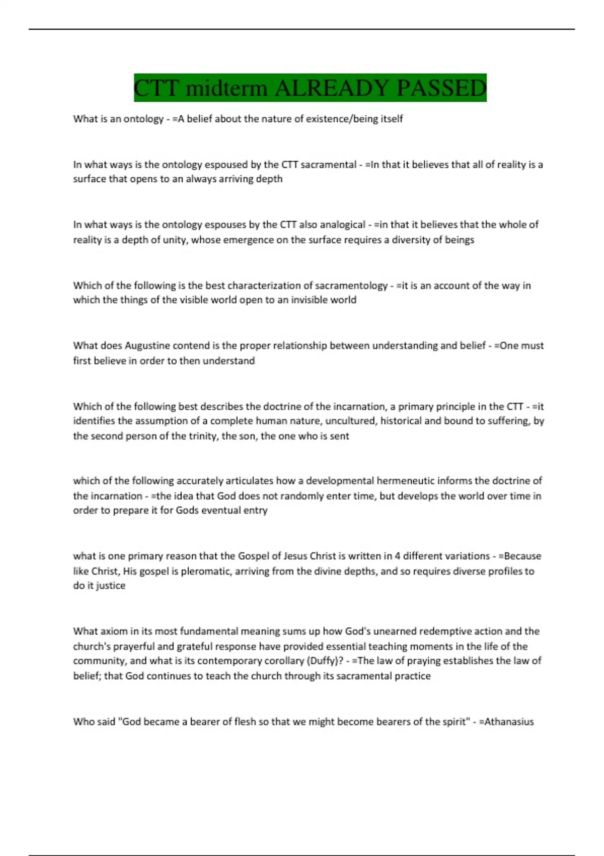 Which of the following best describes the doctrine of the incarnation, a primary principle in the CTT - =it