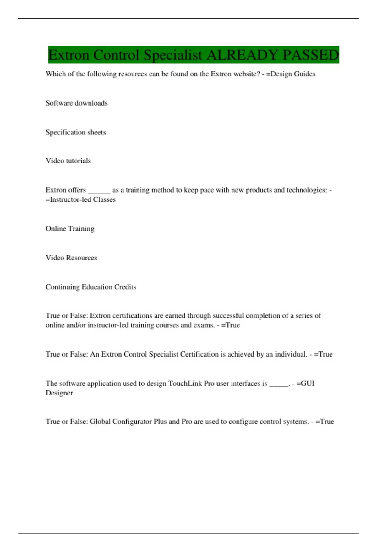 Extron Control Specialist ALREADY PASSED
