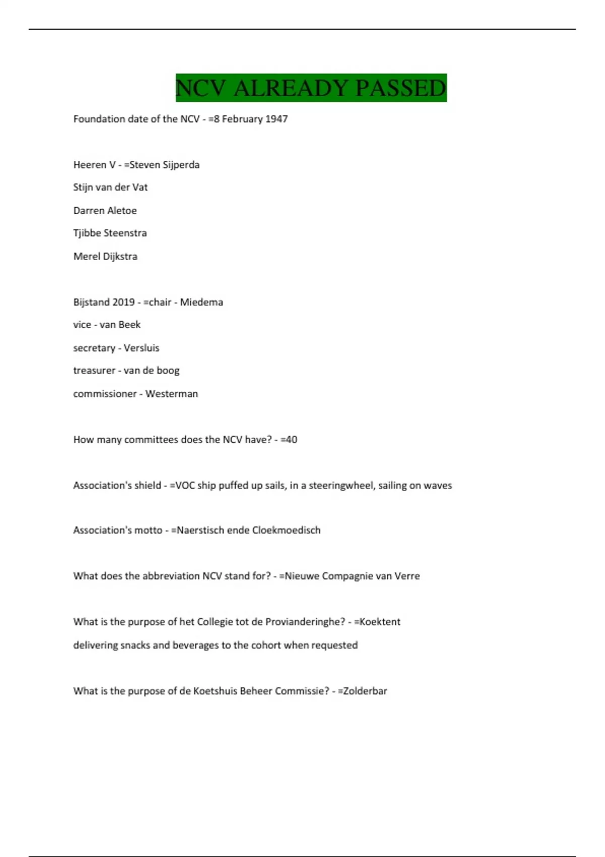 Exam of 5 pages for the course NCV A at NCV A (NCV ALREADY PASSED)