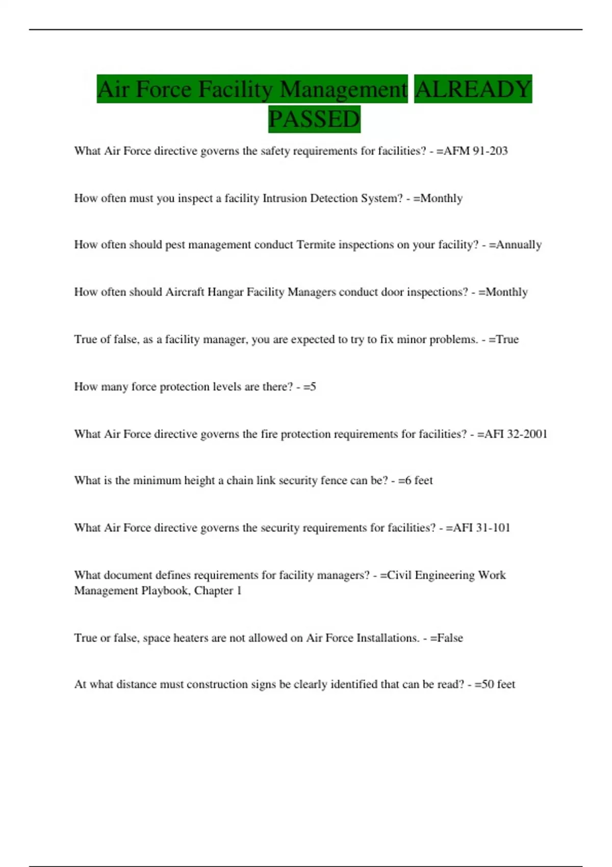 Air Force Facility Management ALREADY PASSED