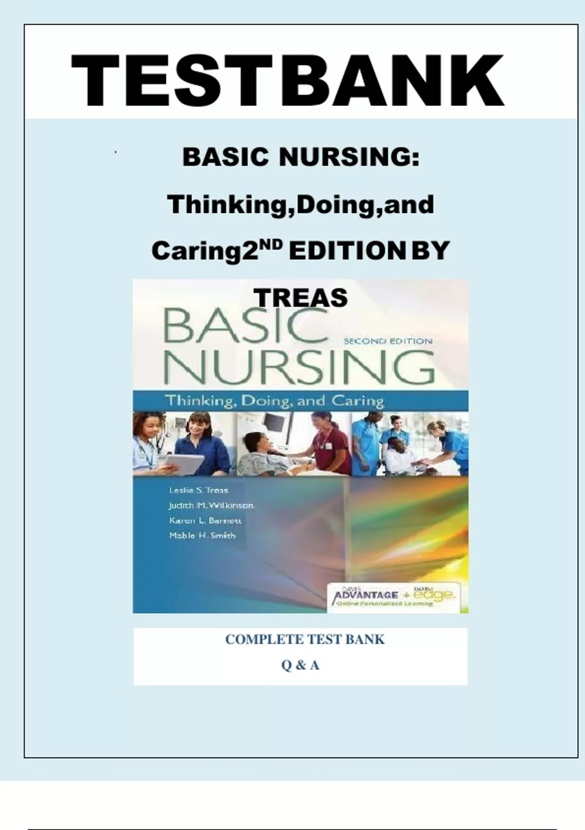 ,TESTLBANKLFOR:LBASICLNURSING:LThinking,LDoing,LandLCaring,L2ndLEditionLByLTreas