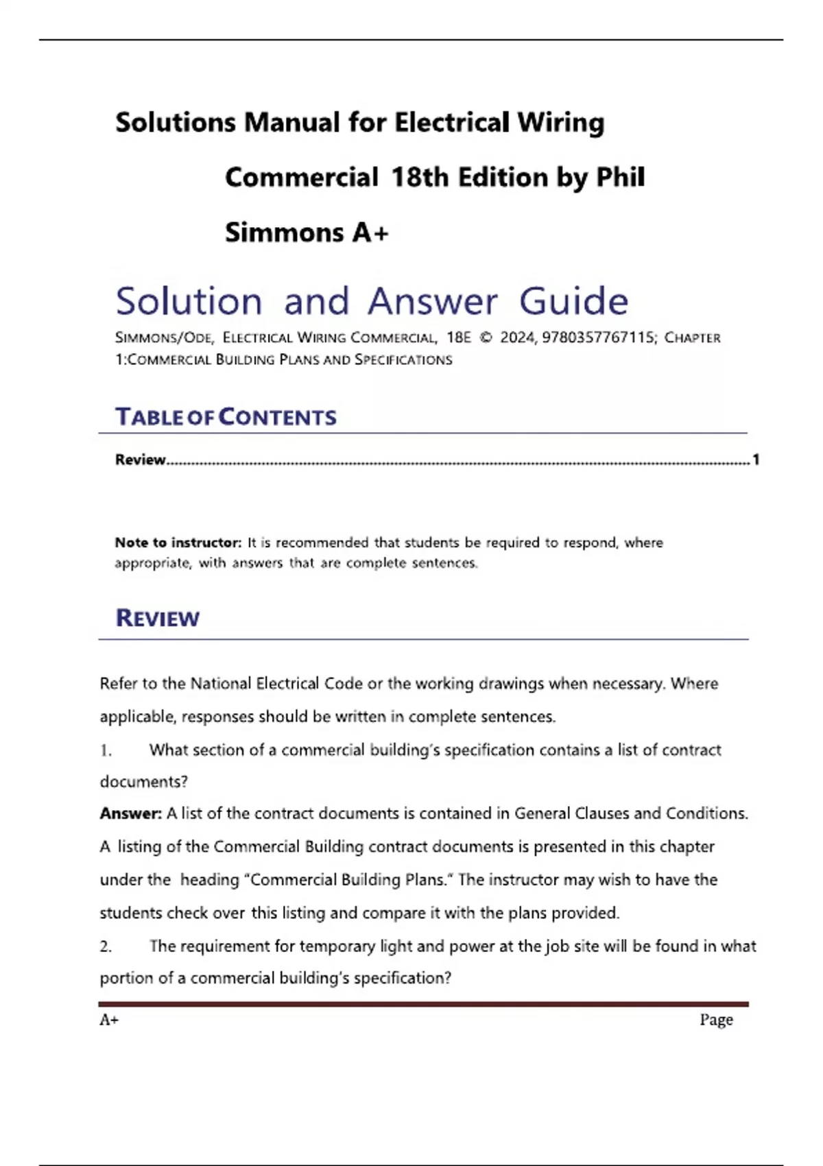 Solution and Answer Guide Electrical Wiring Commercial 18th Edition by Phil Simmons, Ray C. Mullin, Mark Ode