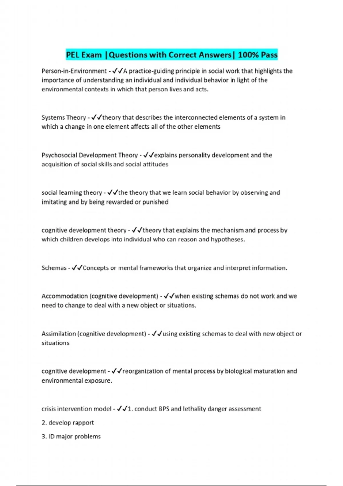 PEL Exam |Questions with Correct Answers| 100% Pass