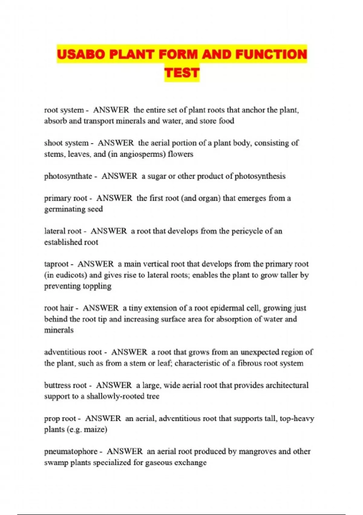 ALL USABO PACKAGED EXAMS: QUESTIONS WITH 100% VERIFIED ANSWERS LATEST UPDATED...