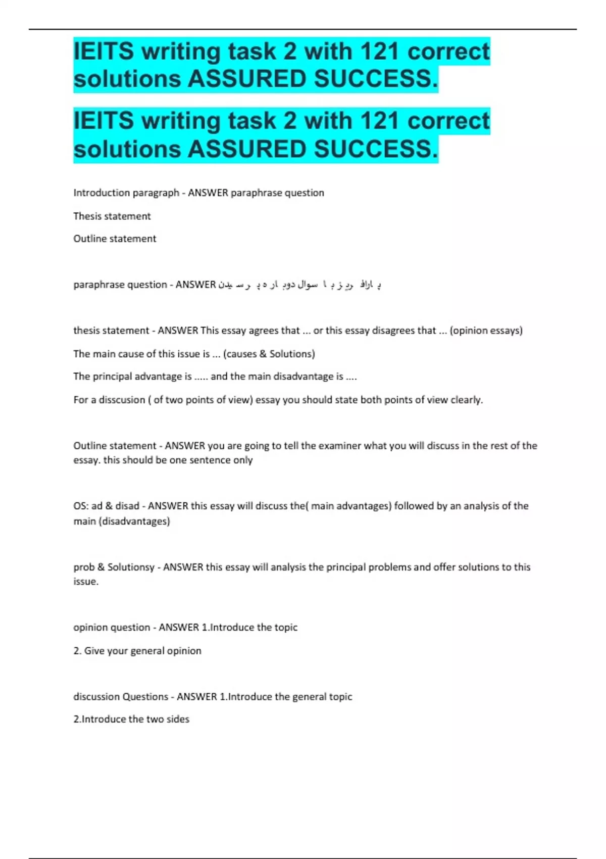 IElTS writing task 2 with 121 correct solutions ASSURED SUCCESS.
