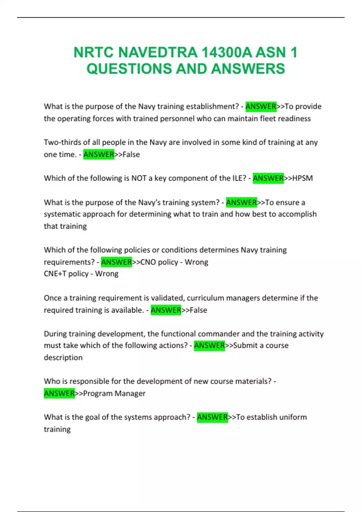 What is the purpose of the Navy's training system? - ANSWER>>To ensure a