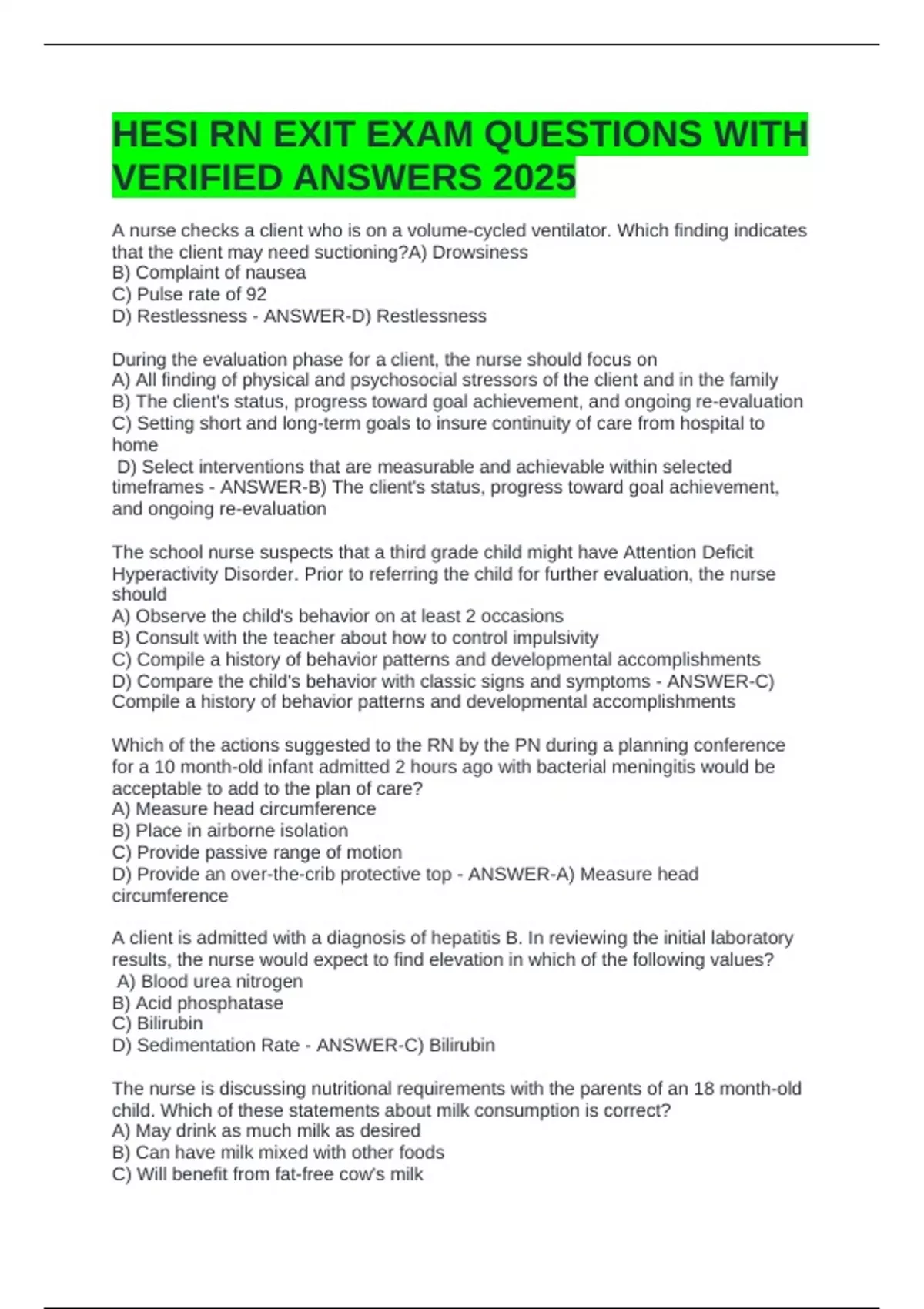 HESI RN EXIT EXAM QUESTIONS WITH