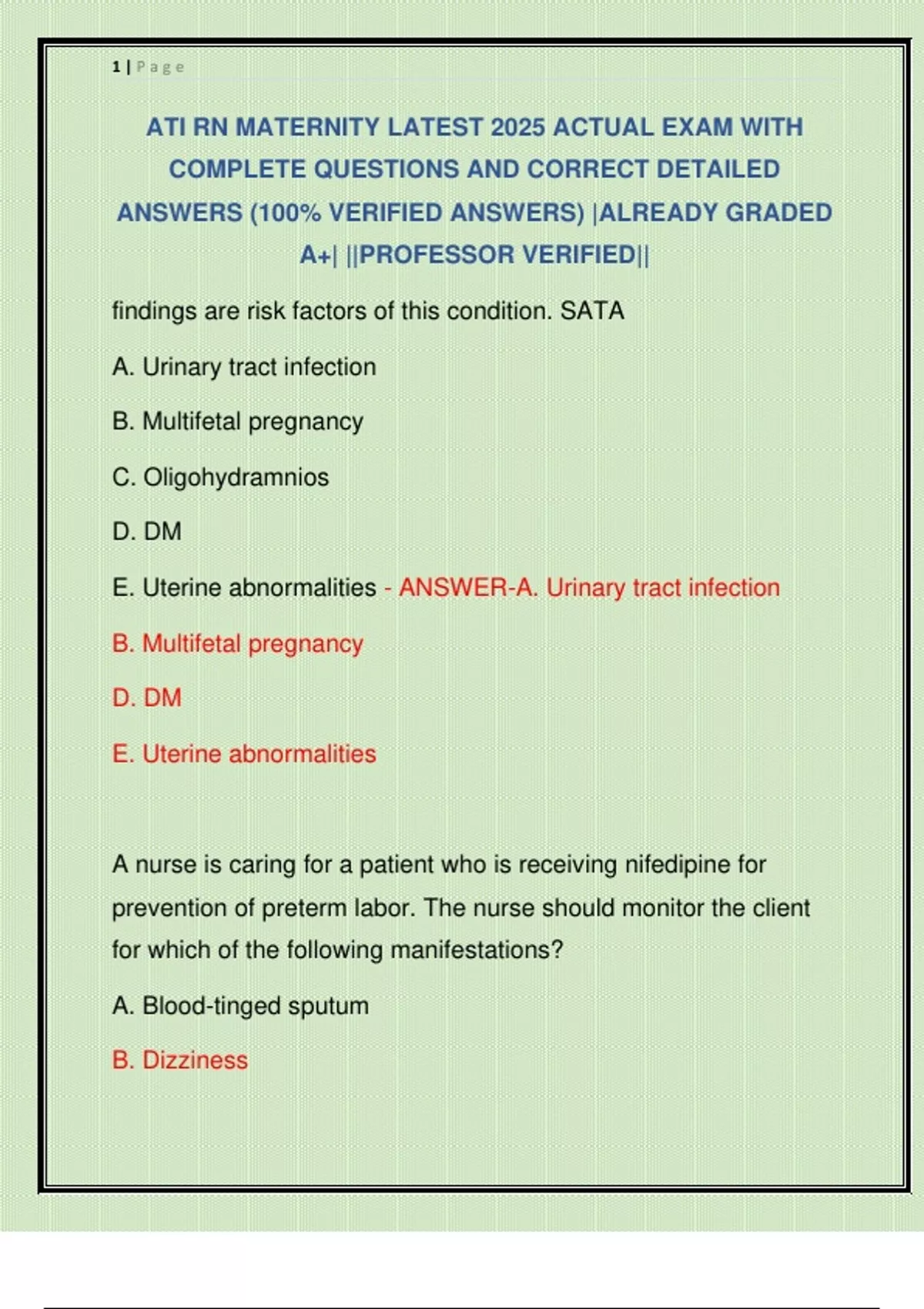 D. Hydramnios - ANSWER-B. Infection