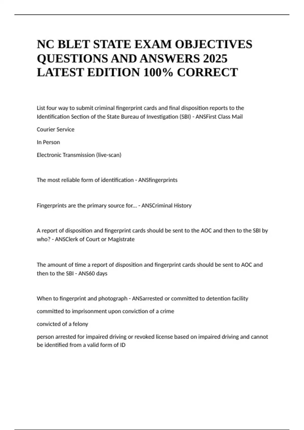 Identification Section of the State Bureau of Investigation (SBI) - ANSFirst Class Mail