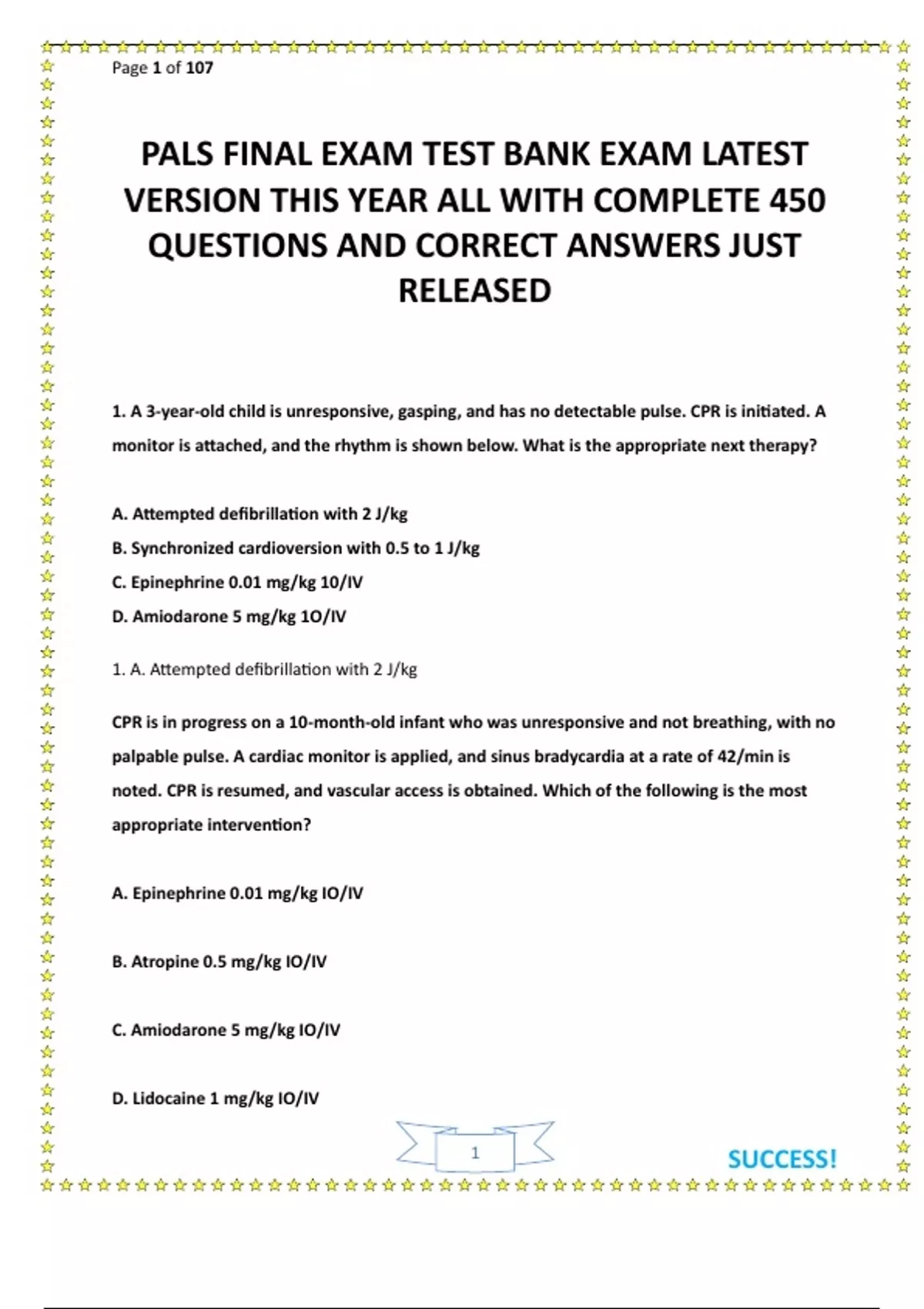 PALS FINAL EXAM TEST BANK EXAM LATEST