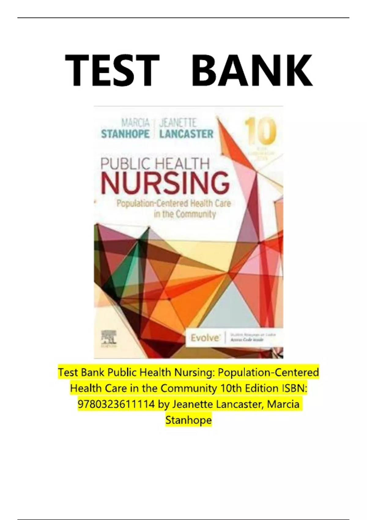 TEST BANK for Public Health Nursing: Population-Centered Health Care in the Community 10th Edition by Stanhope & Jeanette Lancaster | All 46 Chapters