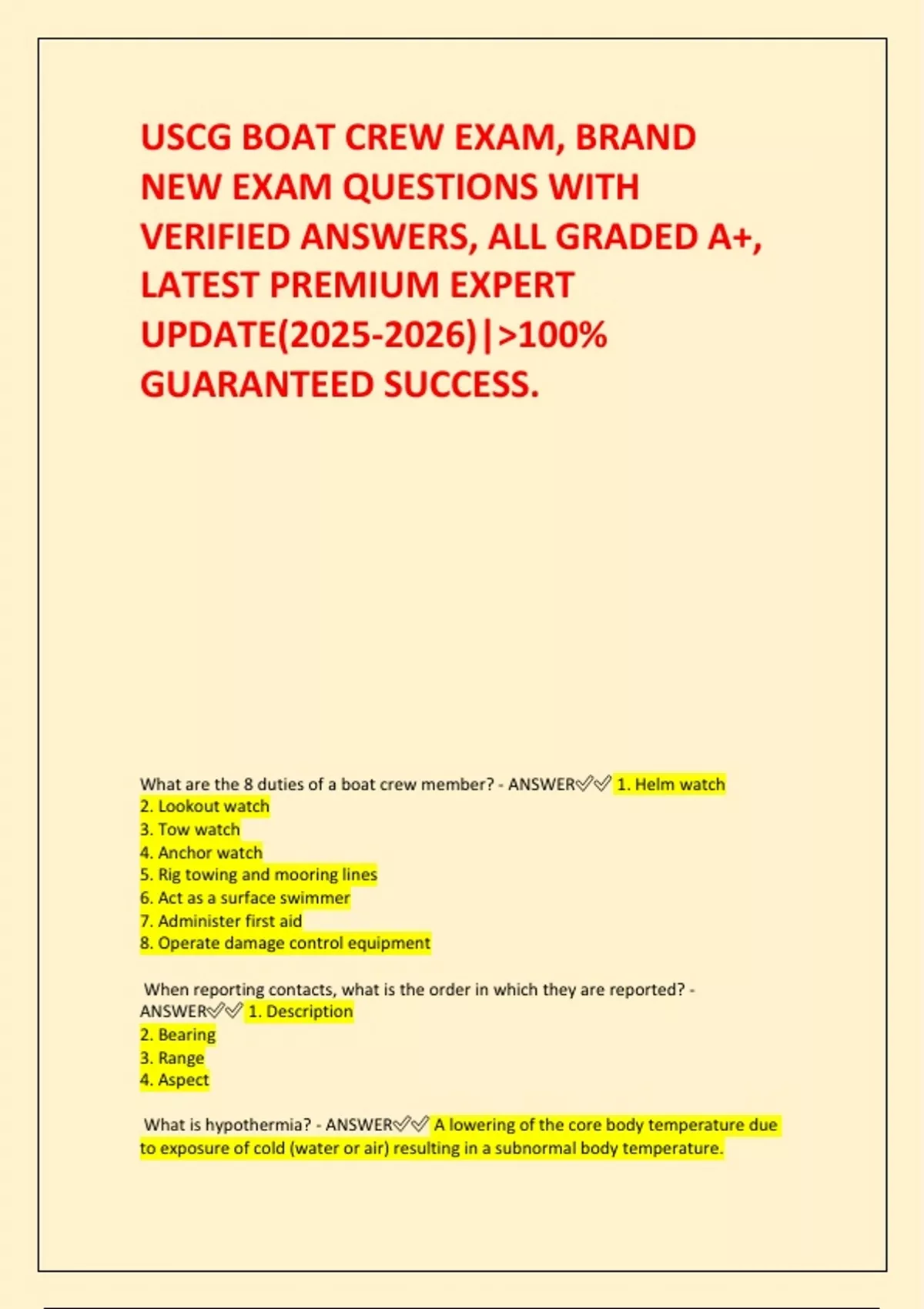 USCG BOAT CREW EXAM, BRAND NEW EXAM QUESTIONS WITH VERIFIED ANSWERS, ALL GRADED A+, LATEST PREMIUM EXPERT UPDATE()|>100% GUARANTEED SUCCESS.